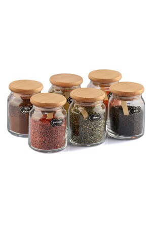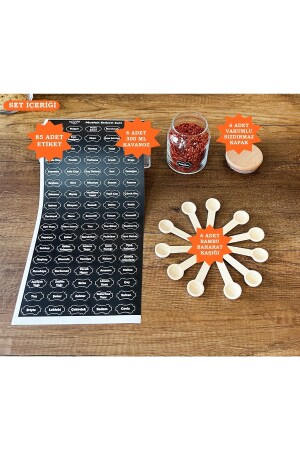 12'li Kapağı Kendinden Kaşıklı Ve Etiketli Baharatlık Seti 300 ml Gold Etiketli Cam Baharat Takımı
