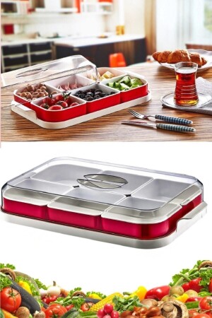6 Bölmeli Kare Kapaklı Tepsili Lüks Kahvaltılık Modern Sunum Seti Ve Saklama Kabı TYC00811401678