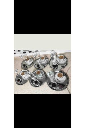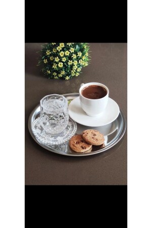 Paslanmaz Çelik Kare 6lı Aksesuarsız Çay Kahve Sunum Tepsisi