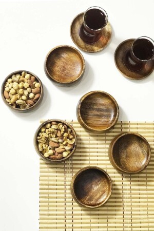 مادة من المواد: خشب الأقشية. أكاشيا 6-piece snack Bowl مقاوم للمياه. يوصى به الغسيل يدويا للاستخدام الطويل الأمد. مصنوع من