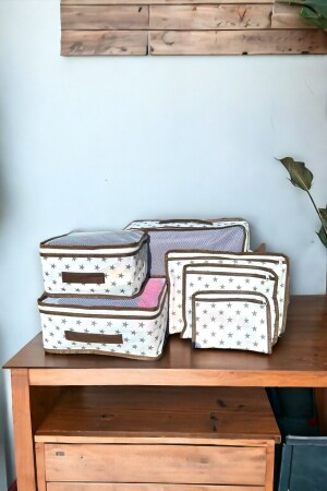 MNZ-6-Piece Beige Herringbone حقيبة منظمة حقيبة منظمة مجموعة