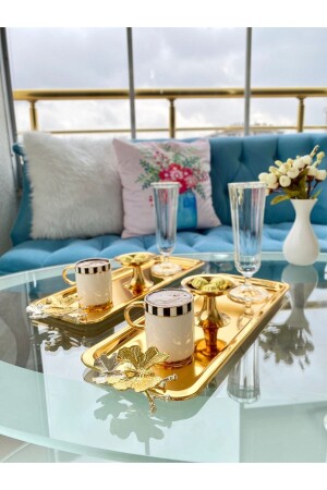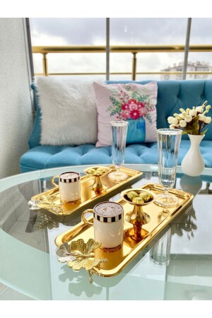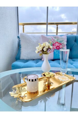Lüx Kare Kelebek Aksesuarlı Paslanmaz Çelik 6’lı Gümüş Kahve, Çay, Dekoratif Sunum Servis Tepsisi MZKBK667