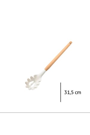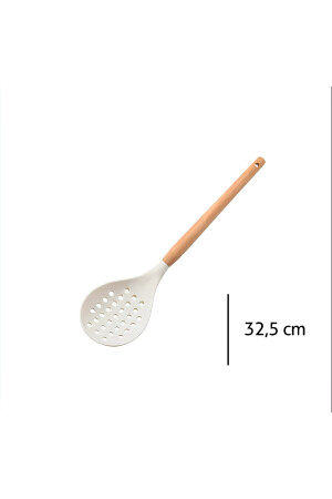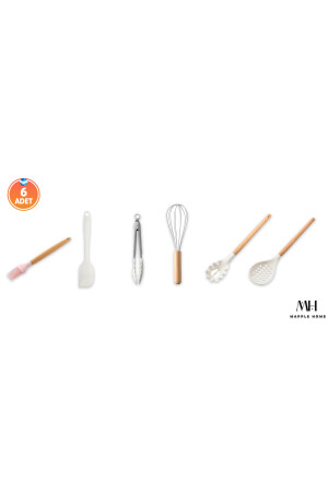 MNZ-6- Piece Bamboo Handle سيليكون فرشاة كولاندر بيتر طونغات المعكرونة ملعقة سباتولا المطبخ المجموعة كريم بامبو-0