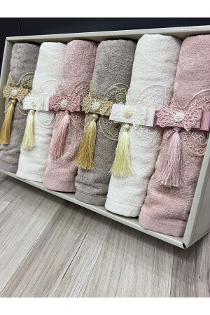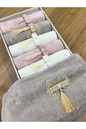 MNZ-6- Piece Boxed Dowry Holder مع قوس و Tassel 50x90 لحام يد و منشفة وجها