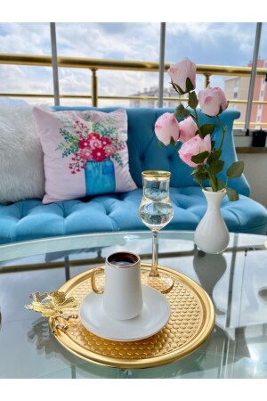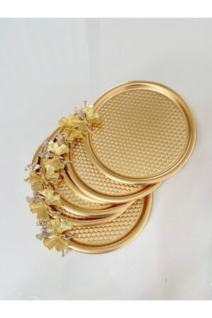MNZ-6- Piece Butterfly Round Patterned Gold Presentation، تخبّر مزخرف، شاي، كيك، قهوة 23 سم DNLİGKLBK6
