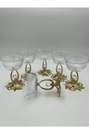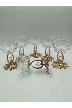 Dekoratif Gold Kaplama 6 Lı Makaronluk Kahve Yanı Sunumluk Lokumluk Lüx