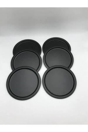 MNZ-6- Piece Metal Round Tea، Coffee، Cake Serving Tray تقديم أزياء العلبة الأسود 24 سم SYH246