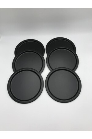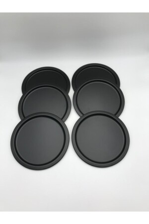 MNZ-6- Piece Metal Round Tea، Coffee، Cake Serving Tray تقديم أزيائي تراب سوداء 24 سم SYH6T6