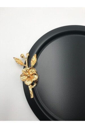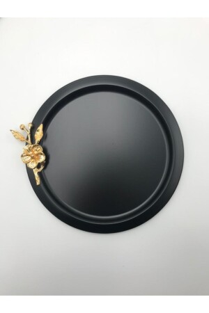 MNZ-6- Piece Round Gold Floral Black تقديم الصندوق، تزيين الخدمة الصندوق الشاي القهوة 24 سم TNAG99