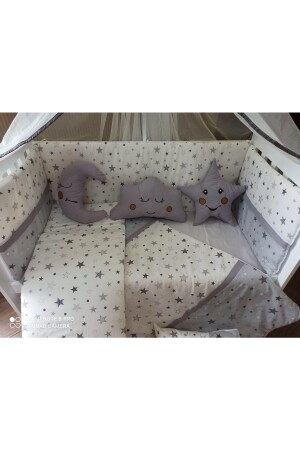 70x110 Park Beşiklere 10 Parça Bebek Uyku Seti - Kahverengi Ay Yıldız Desen (BEŞİ?K HARİ?Ç)