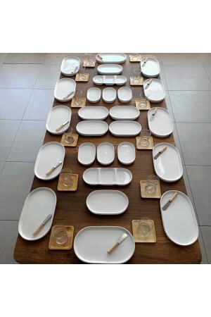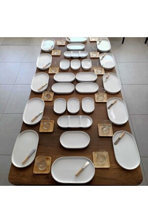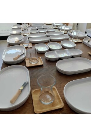 64 Parça 12 Kişilik Platin Modern Krem Kahvaltı Takımı