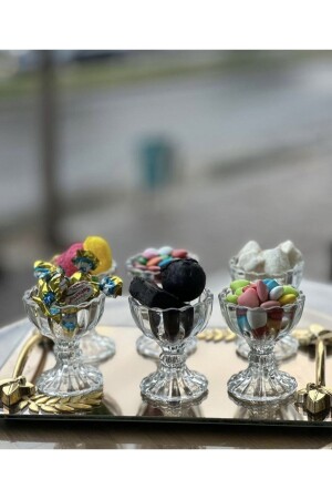 6 Adet Boncuklu Mika Akrilik Lokumluk Şık Kahve Yanı Sunum Çikolata Lokum Kasesi Şekerlik Sunumluk