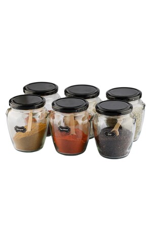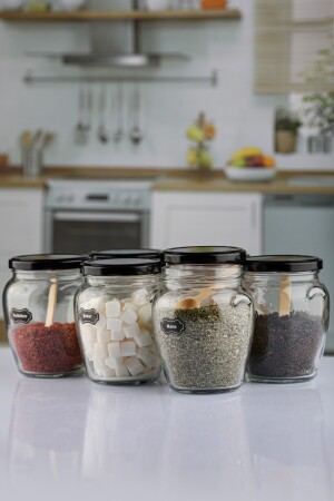 12'li Kapağı Kendinden Kaşıklı Ve Etiketli Baharatlık Seti 300 ml Gold Etiketli Cam Baharat Takımı