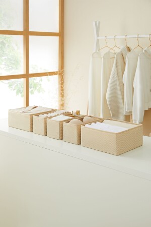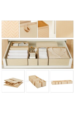 MNZ-6-Piece Beige Drawer Cabinet غسيل الموضة المرتبة غرفة الأطفال صندوق تخزين قابلة للطي مجموعة منظمة