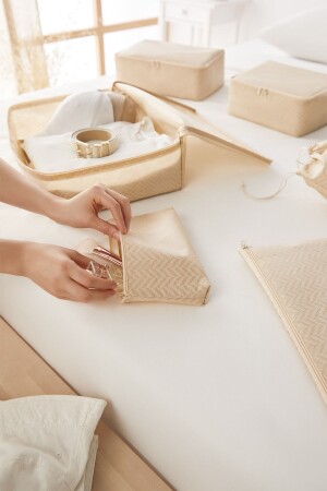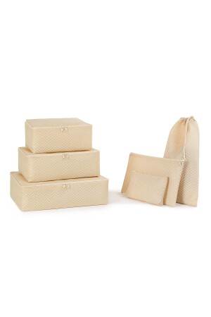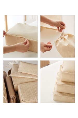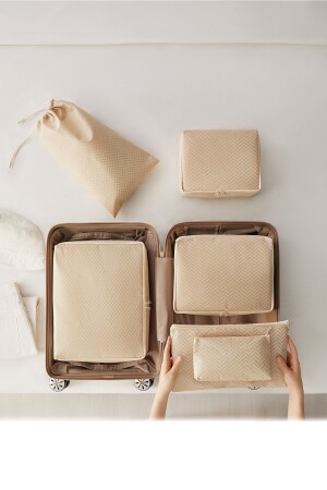 MNZ-6-Piece Beige Herringbone حقيبة منظمة حقيبة منظمة مجموعة