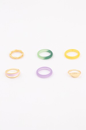 MNZ-6-Piece Enamel Stone Resin Combination Ring Set 0927