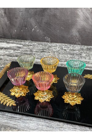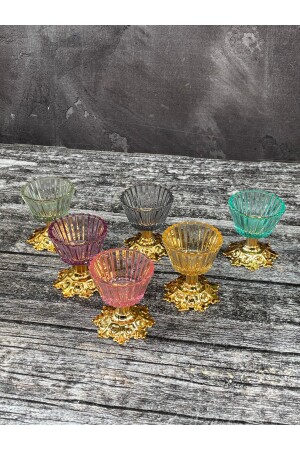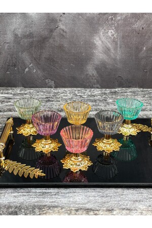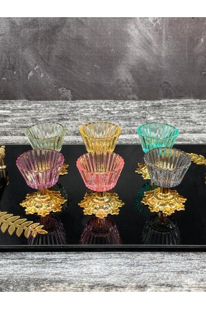 MNZ-6-Piece Glass Colored Footed Presentation Bowl صغرى تركية لذيذة Bowl كوب القهوة جانبية Bowl وجه ورقة وعاء التقدير
