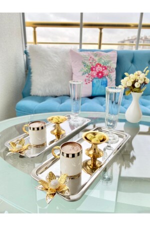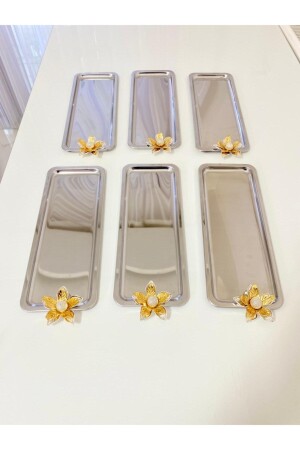 Paslanmaz Çelik Kare 6lı Aksesuarsız Çay Kahve Sunum Tepsisi