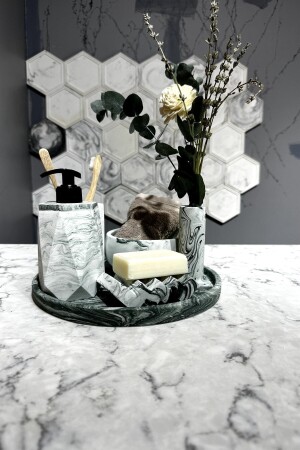 MNZ-6-Piece Marble Patterned Concrete Bathroom Set Toilet Wc Liquid Soap Dispenser Brush Holder Accessory Set TYCTF05HRN1688337