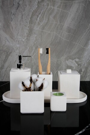 5 Parça Lucas Akrilik Bambu Banyo Seti Beyaz
