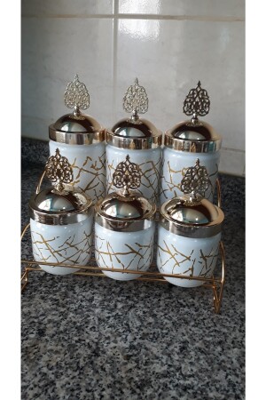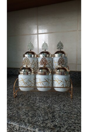 12'li Kapağı Kendinden Kaşıklı Ve Etiketli Baharatlık Seti 300 ml Gold Etiketli Cam Baharat Takımı