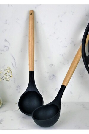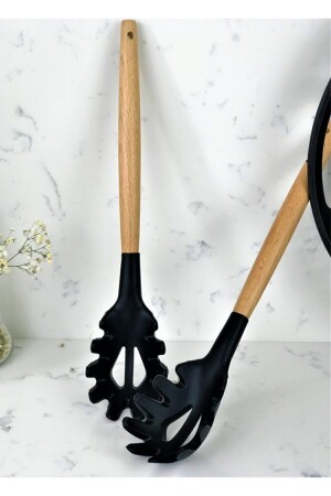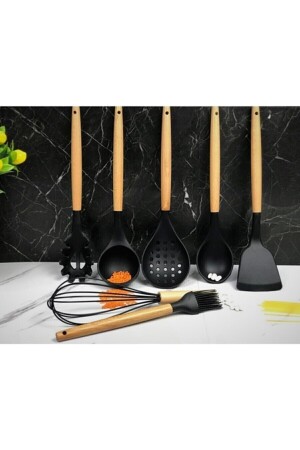 MNZ-7 قطعة من البامبو المقبضات السيليكون سكوب سباتولا المطبخ مجموعة الأسود SN-2021-2189