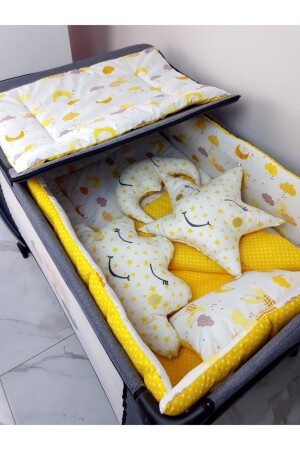70x110 Park Beşiklere 10 Parça Bebek Uyku Seti - Kahverengi Ay Yıldız Desen (BEŞİ?K HARİ?Ç)