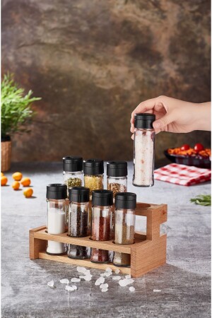 12'li Kapağı Kendinden Kaşıklı Ve Etiketli Baharatlık Seti 300 ml Gold Etiketli Cam Baharat Takımı