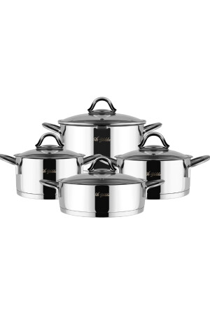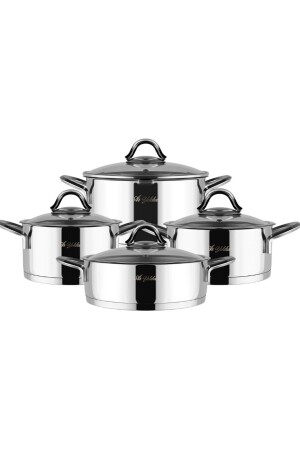 MNZ-Aryıldız 8-piece Madison Strainer Lid Pot Set Set Set Set: 1 قطعة 18x10 سم 2 L صوصان 1 غطاء زجاجي / بركة مع ثقب