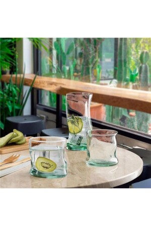 سلسلة Aware من Paşabahçe. مصنوعة من 100٪ من المواد الزجاجية المعاد تدويرها. شكل الموجة في تصميمها يوفر مظهرًا حديثًا