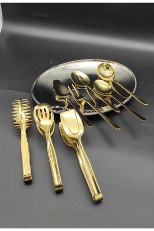Kelebekli Gold Salata- Makarna ve Pasta Servis Sunum Maşası- Paslanmaz Çelik Yemek Maşa Seti