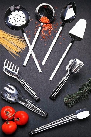 MNZ-8 قطع عصرية عصرية نموذج الخدمة مجموعة، اللادل كولاندر ملعقة سباتولا المعكرونة سلطة جريل كعكة Tongs المنزلية