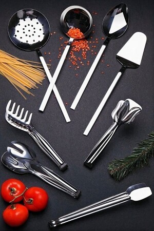Deniz 6 Parça Paslanmaz Çelik Kevgir Kaşık Kepçe Izgara Maşa Servis Takımı Seti