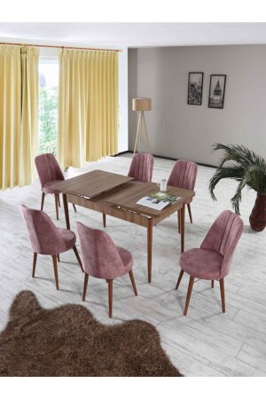 طاولة مُوسعة سلسلة MNZ-Astera + 6 قطع ثياب وجه الطفل المدخن المطبخ غرفة المعيشة غرفة الطعام مجموعة