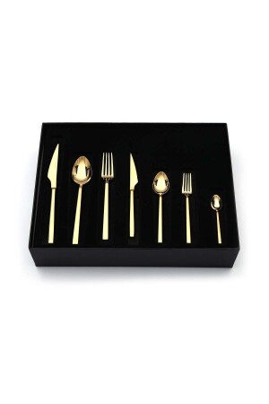 Gold Parlak Çay Kaşık Seti 6 Adet, Kutulu, 18-10 Paslanmaz Çelik 6 Kişilik Çay Kaşığı Seti Titanyum Gold Çay Kaşığı 6 Adet
