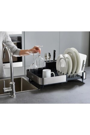 Paslanmaz Alüminyum Iki Katlı Siyah Bulaşıklık Modern Tabaklık