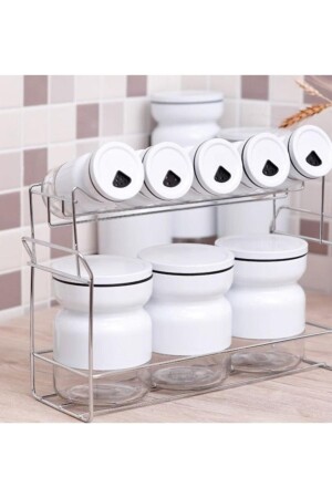 MNZ-9 Pieces Metal Coated Glass Spice Jar White 13625 خصائص المنتج: 3 صنادل كبيرة من العقاقير (500 مل) ، 5 صنادل صغيرة من العقاقير (100 مل