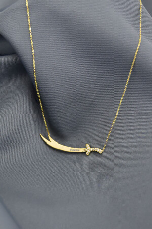 MNZ-925 الفضة الفضائية الذهبية المغطاة فاطمة مكتوبة الحجر ذو السيف زلفيكار قلادة عنق UVPTS100061