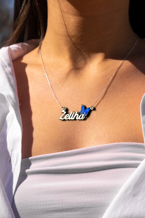 MNZ-925 الفضة الفضية المخصصة تسلاسل عنق الفضة المرأة مع تفاصيل الفراشة الملونة DC0003