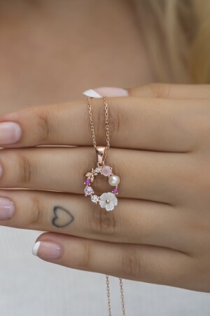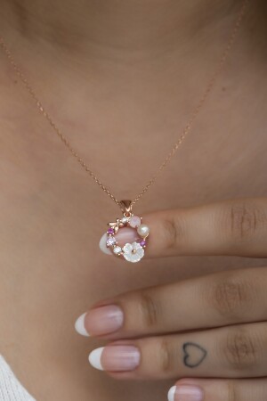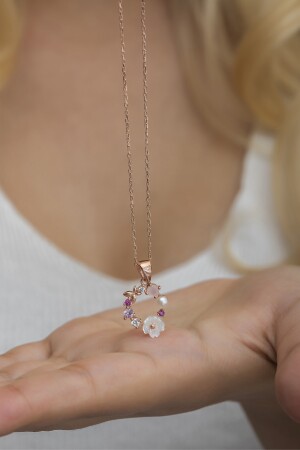 Gümüş Rodyumlu Renkli Taşlı Kar Tanesi Kolye SGTL10714RODAJ