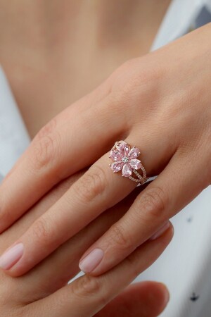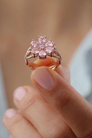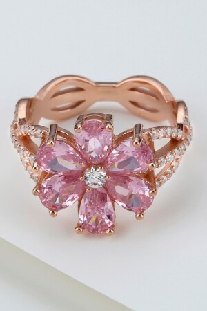 Gümüş Rodyumlu Pırlanta Modeli Pembe Taşlı Kalp Yüzük