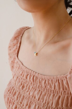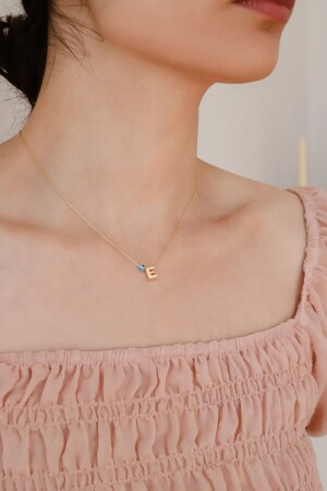 MNZ-925 سبرينغ فولاذي عنق الفضة للمرأة مع ثلاثية الأبعاد حرف E مع العيون MNMSE01