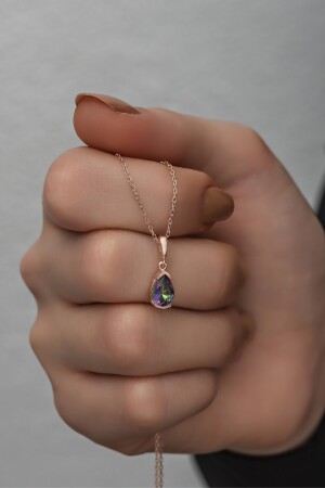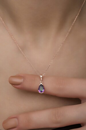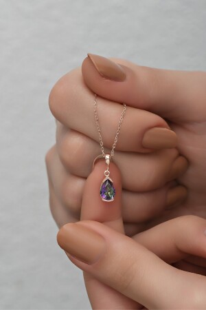 MNZ-925 سدرلينغ فولاذر قطرة Mystic Topaz Stone Solitaire قلادة NRZ998353