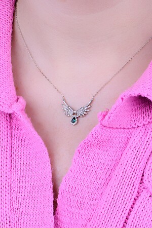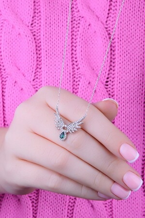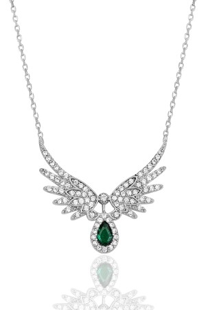 MNZ-925 سدرلينغ فولاذية سلسلة خضراء الزمرالد قطرة الحجر ملاك الجناح العنق SS-CC-083