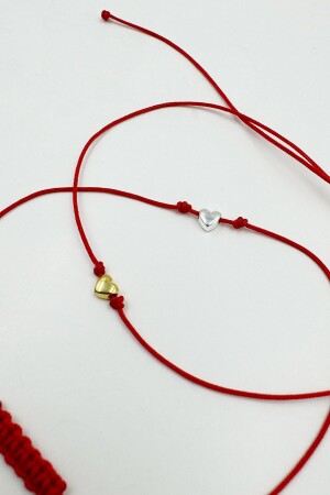MNZ-925 سوار قلب فضي سليم مع حبل أحمر للحظ والنجاح والحماية - قطعة واحدة