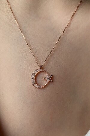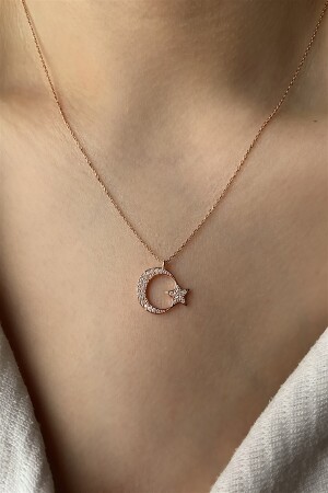 MNZ-925 قيراط نصف قمر وقلادة نجمية مع 3 غرام من حجارة الزيركون ، طول 45 سم. منتجاتنا هي حجم قياسي. يتم إرسالها في صندوق