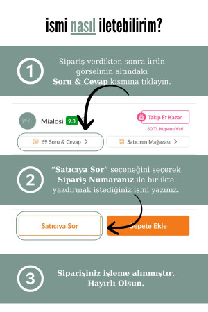 MNZ- بعد طلبك، يمكنك إرسال لنا الاسم الذي تريد أن تكتب عليه على المنتج، جنبا إلى جنب مع رقم طلبك، في قسم الأسئلة والإجابات. المع