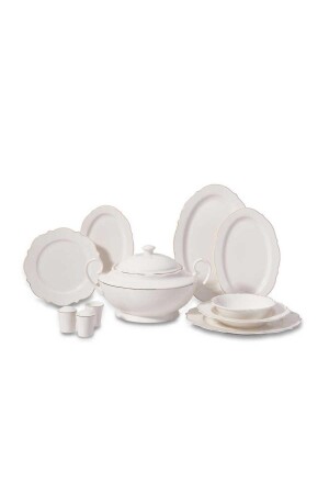 MNZ-KORKMAZ A8241 ELIZA COLL.60 قطعة طعام مقعدة طعام مقعدة 45-52% مسحوق العظام 60 قطعة - عشاء مجموعة 12 شخص