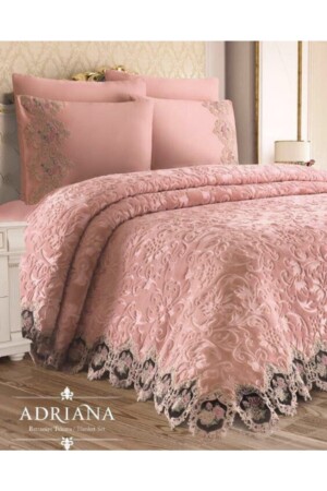 Boncuklu Battaniye Fransız Dantelli ( Yatak Örtüsü ) Takımı 6 Parça Çeyiz Seti