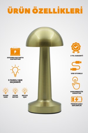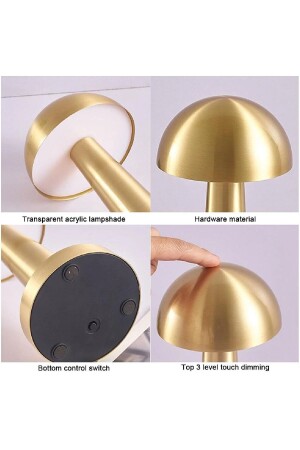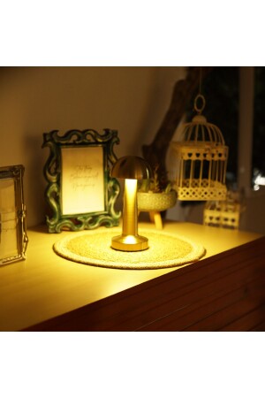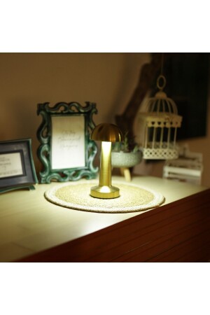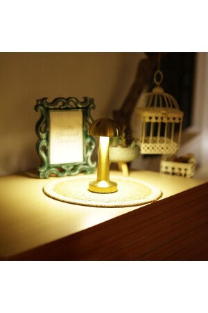 MNZ-Agl-009g ديكوراتي المعدات الذهبية الفطر مصباح طاولة لاسلكي LED 5v 3ألوان